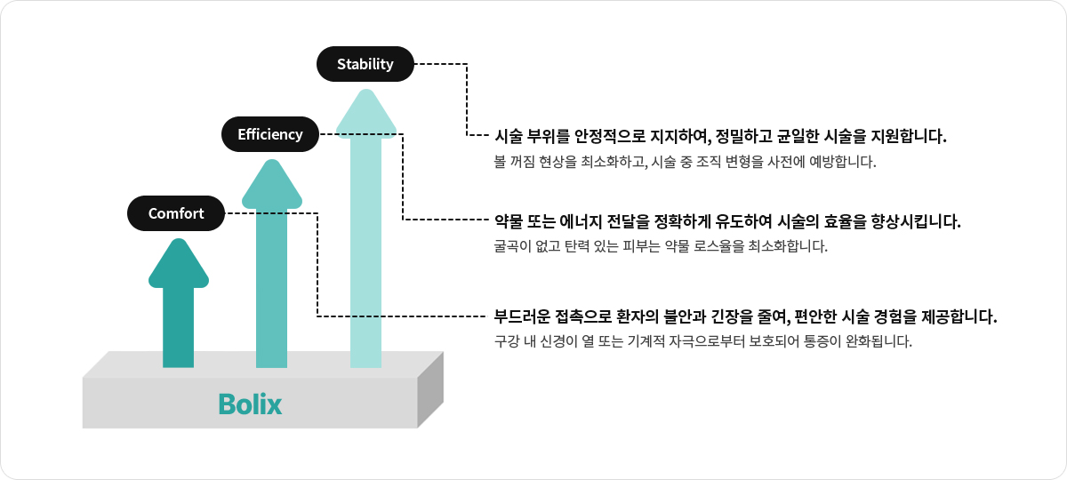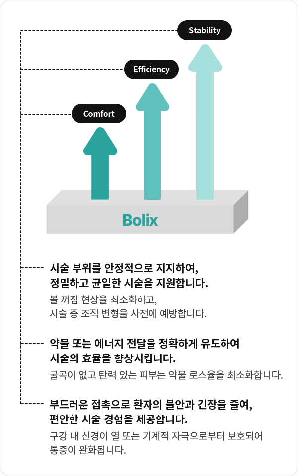 볼릭스는 다양한 안면 미용 시술 환경에서 안정적인 지지와 시야 확보에 도움을 주는 새로운 솔루션입니다.